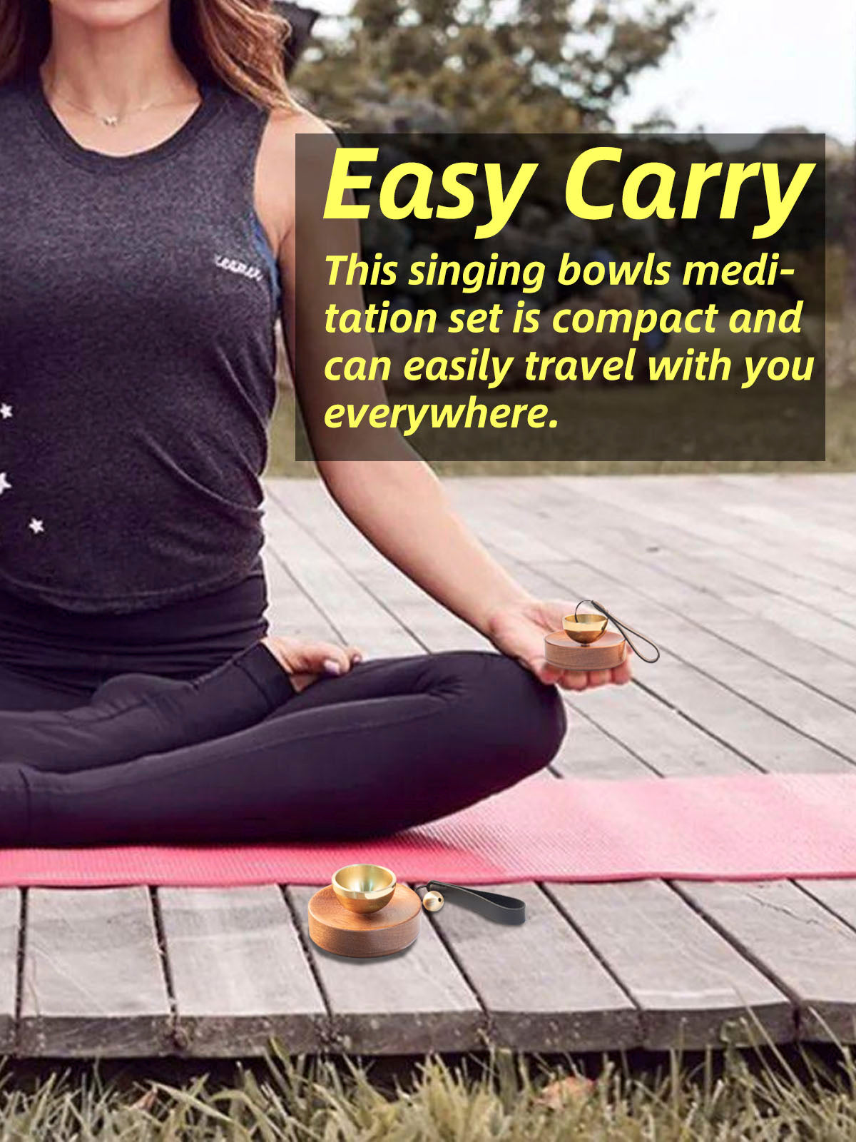 This singing bowls meditation set is compact and can easily travel with you everywhere. Bring to yoga classes, the office or retreats. It is small enough to fit in the palm of your hand, yet sings with pure, layered tones.
